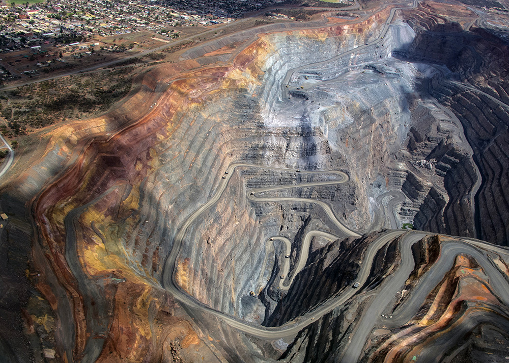 Aerial view over the super pit at Kalgoorlie, WA