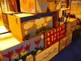 たくさんのお友だちが色ぬりのお手伝いをしてくれたので、用意した130個すべての箱に色をぬることができました。
