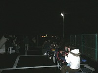 プラネタリウム投影中なんとか雨は止み観望会は決行となりました。雲はまだ空を覆っており、月がたまに見え隠れ状態。みなさんも不安げでしたが、待っていただいている間に暖かい飲み物を飲んでいただきました。