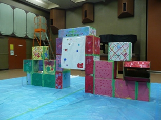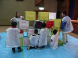 さて、みんなでダンボールのお城をどんな色のお城に変身させてくれるのでしょうか。
