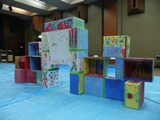 男の子チームも女の子チームも、とってもすてきなお城になりました。3日目の明日は、色ぬりが終わったお城に飾りを付けていきます。明日もおたのしみに!