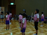 ようやくバトンを持って基本から教わりますはちの字・水平に回したり、バトンを投げてキャッチしたり・・・うまく扱うコツを教えてもらったので上手に回せていました