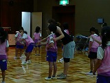 次に曲に合わせてみんなで演技する練習をしました。ここで基本のボディワークが生きてきます。バトンを回したりステップを踏んだり・・・