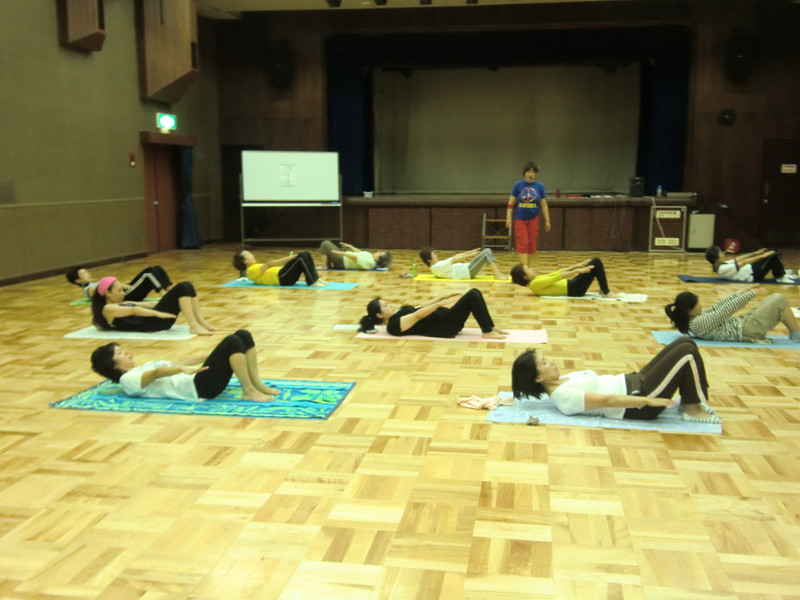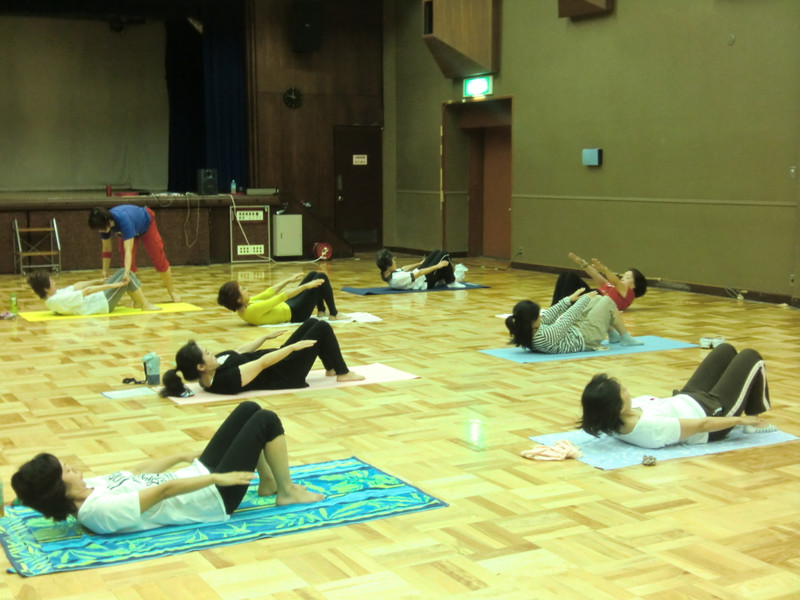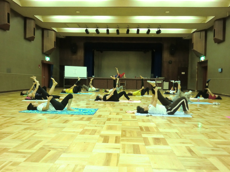 最後はクールダウンです。足をしっかり伸ばしましょうね。1回目より2回目、2回目より3回目と皆さん動きに慣れてスムーズに動いていました。カラダを伸ばすコツも理解してきているみたいです。早くも来週がピラティス講座最終回です。来週も気持ちよく汗をかきましょうね!!