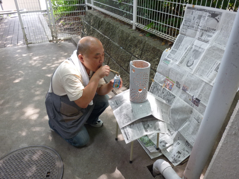 一生懸命に出来上がりをイメージして作品に釉薬をかけました。