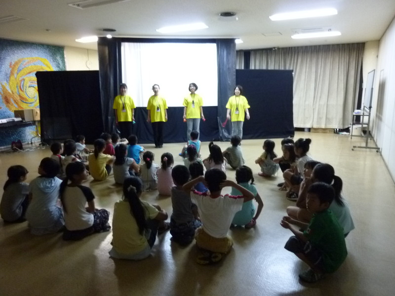 いよいよおかあさんたちの見まもる中、グループごとにかげえげきのひろうです。