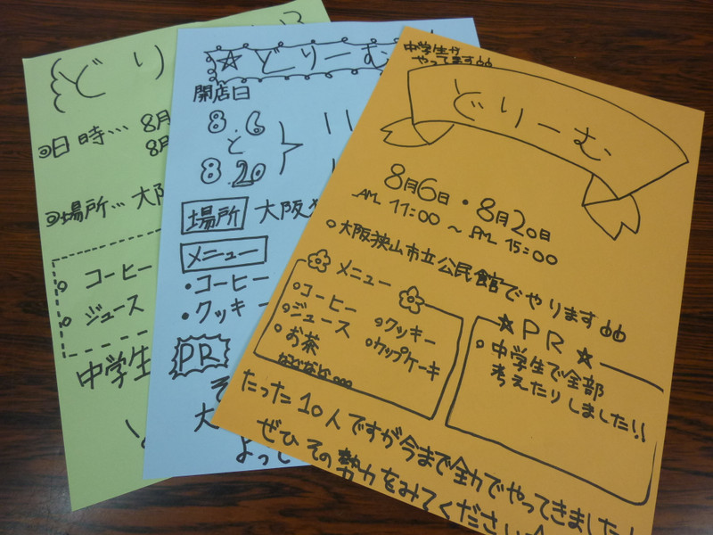 暑い中、人通りも少なかったけれど、みんな一生懸命に「来てくださいね」とサイコ―の笑顔で配りました
