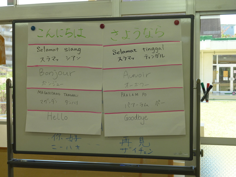 こうりゅうのじかんには、『あくしゅで、こんにちは♪』を6かこくごの『こんにちは』と『さようなら』でたのしみました。