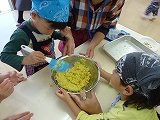 きょうののようすは、しゃしんのとおり、おいもほりあり、ちょうりあり、こうりゅうありと、もりだくさんの2じかんでした。