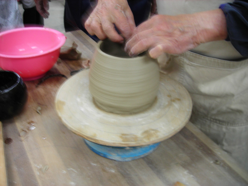 後はひも状の粘土を土台の上に積んで、器の形を作陶していきます。