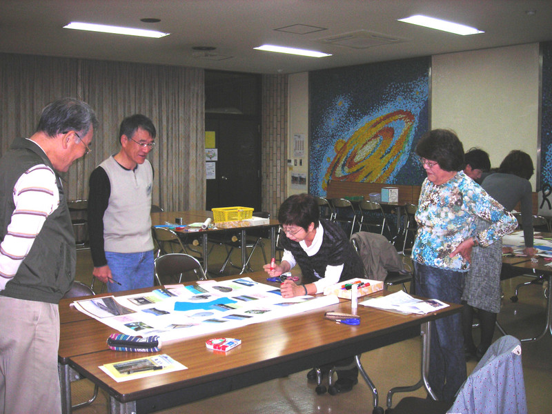 自分と狭山池とのかかわり、好きな季節や景色、この講座の中で心に残ったことなどを話し合った後、グループに分かれて狭山池マップをつくります。