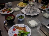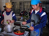 お話を聴くだけでなく、自分で作ってみるということが良い経験になるんじゃないかということで、簡単な昼食メニューを提示いただき、注意事項を聴いた後は、段取りなども班ごとで工夫しながらの調理実習を行いました。