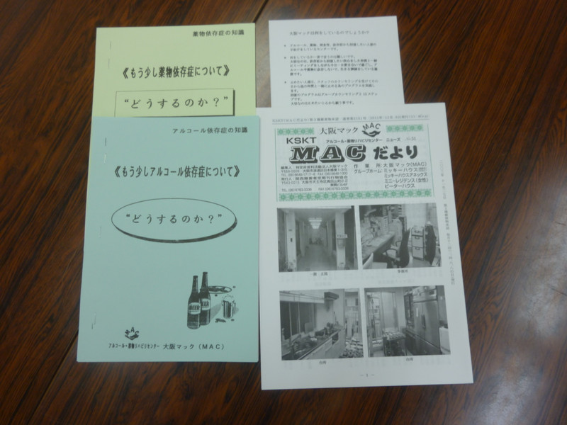 大阪マックもアルコール依存症や薬物依存症の方のリハビリセンターで相談などを行っています。