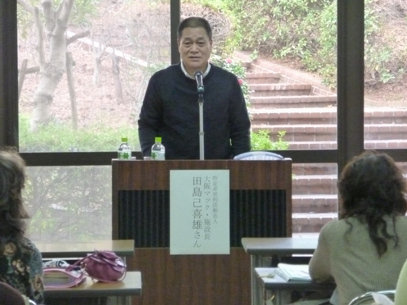 本日の講師は特定非営利活動法人 大阪マック・施設長 田島己喜雄さんらお二人をお迎え致しました。