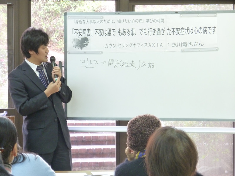 誰にでもなる可能性がある不安障害ですが予防や改善をして対処することが出来ます。このような講座を通して知識や方法を知って頂ければと思います。