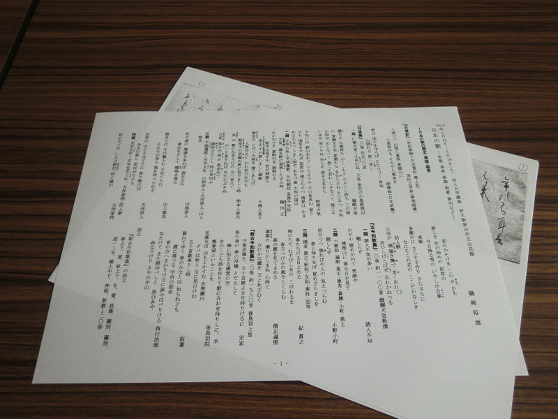 第一回目は「日本の歌の歴史・理論・鑑賞」というテーマです。