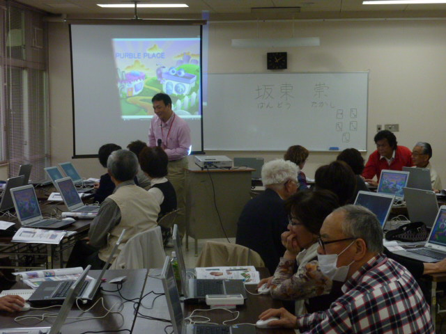 パソコンははじめての方、以前に仕事で使っていて方など色々な方々が来られ、パソコンの用語の説明や特にマウス操作が重要になるので、ゲームを通じて楽しみながらマウスに慣れて頂きました。