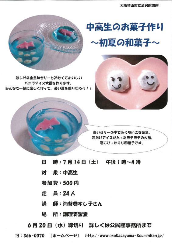 『中高生のお菓子作り~初夏の和菓子~』 中高生対象
