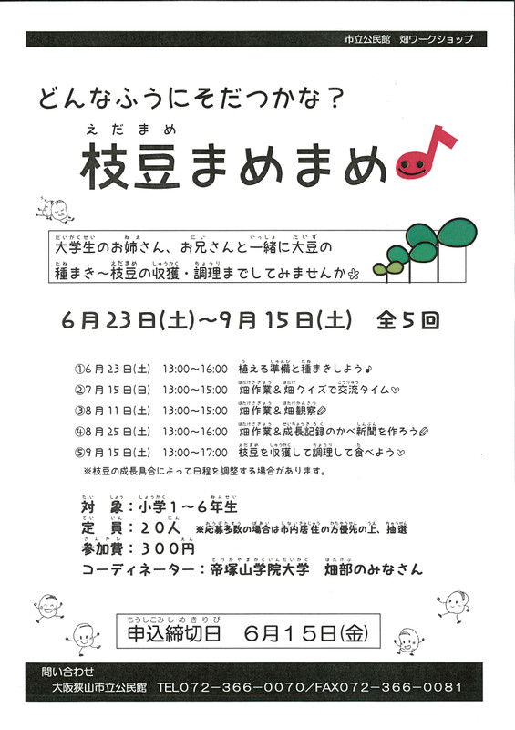 大豆の種まきから枝豆の収穫調理までをしてみませんか