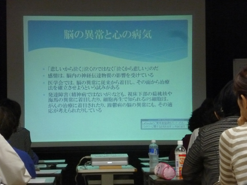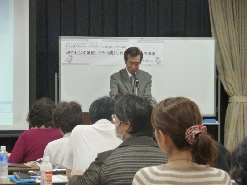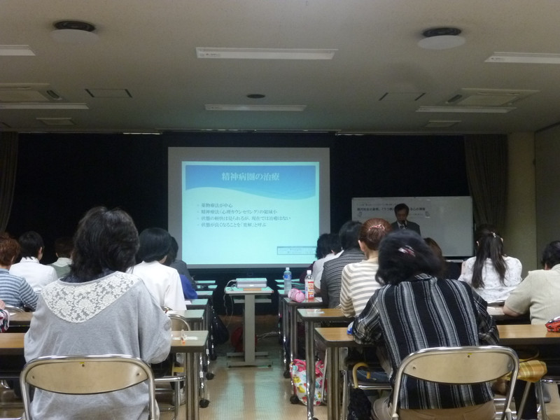 1回目は、うつ病に対しての認識を改めて高めました。講演の合間に心理療法に用いる、抑うつ状態をチェックする「SDSのチェック」や木の絵を描いて心理状態をみる「バウムテスト」も行い受講者のみなさんが自身の気分を計ることが出来きました。