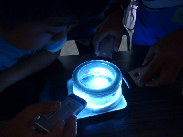 ライトを当てて、じっと見逃さない様に、流れ星のように飛ぶ放射線を探します。