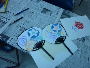 うちわキットを使い、野菜のスタンプで、自分だけのうちわをつくりました。