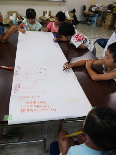 2班に分かれ、火星に住むには、何が必要なのか、行ったら何して遊ぶかなど、それぞれ話し合いをしました。