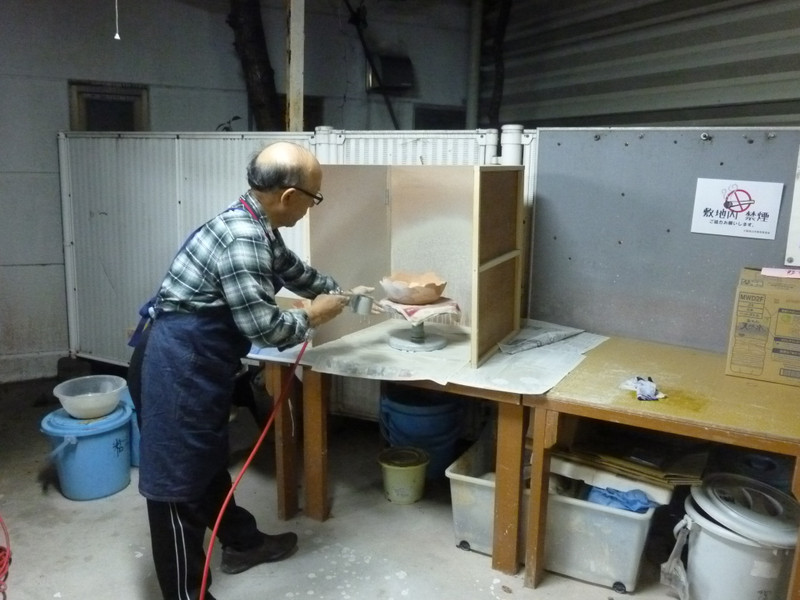 そして、釉薬をコンプレッサーでかけていきます。