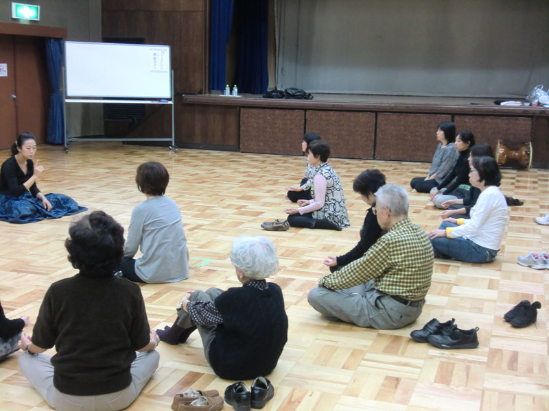 ストレッチ・呼吸の練習をした後は、踊りの基礎を学びました。