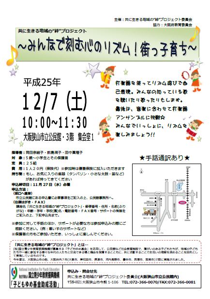 共に生きる地域の"絆"プロジェクト~みんなで刻む心のリズム!街っ子育ち~参加者募集中です。