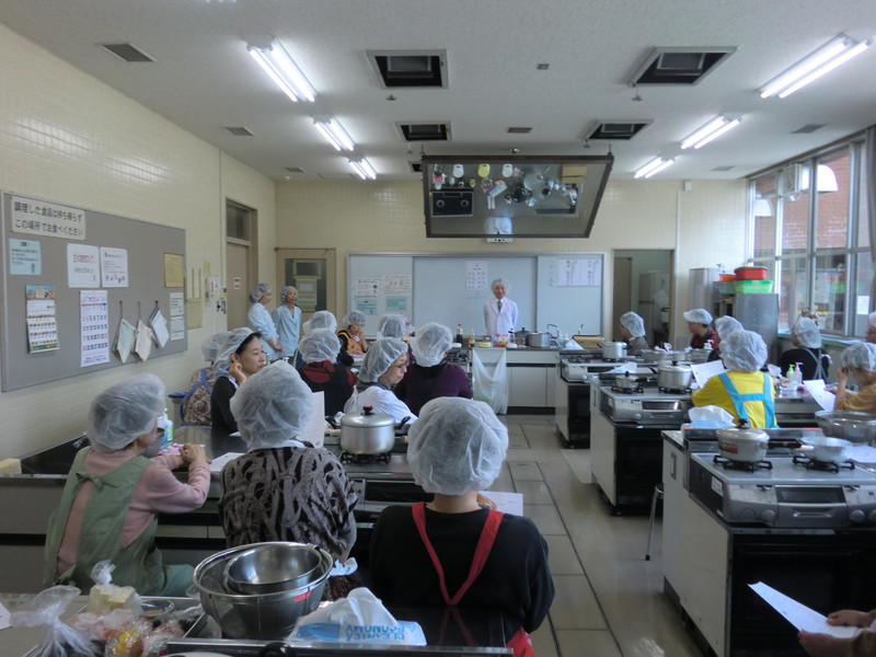 講師に帝塚山学院大学 人間科学部の田中俊治さん・梅本真美さん・小早川真衣さんをお迎えしました。今回はどんな料理でしょう。わくわくですね。