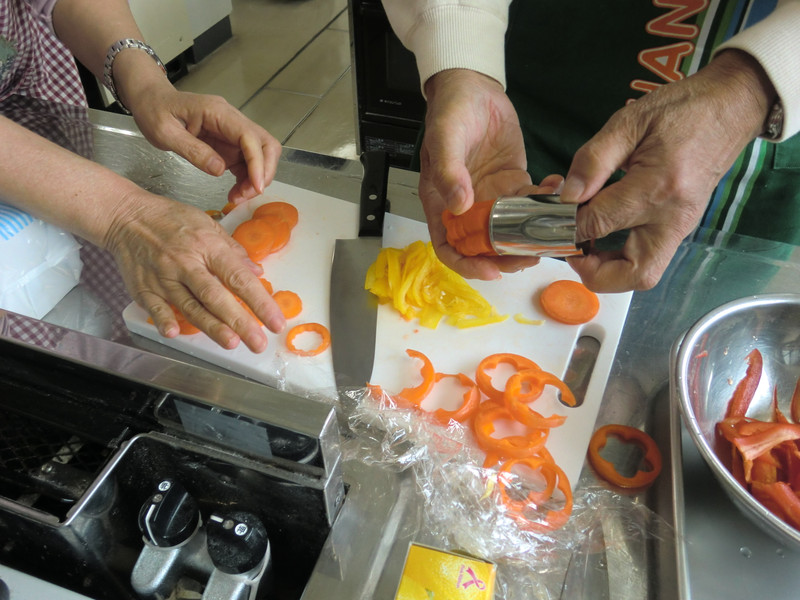 野菜を切る係、調味料を量る係、食材を煮る係など役割分担がバッチリです!!