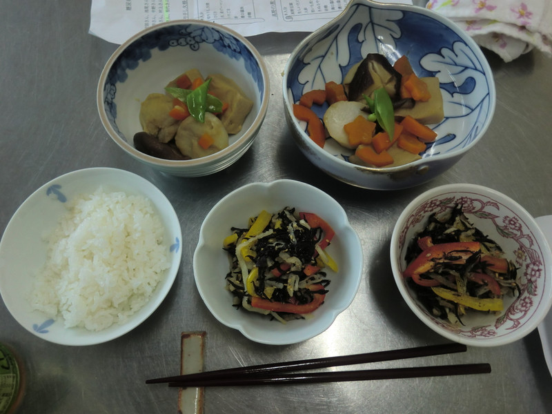 ちなみにご飯には半分こんにゃくが混ぜられていて普段より歯ごたえがあるそうです。これで糖分が抑えられるんだとか。
