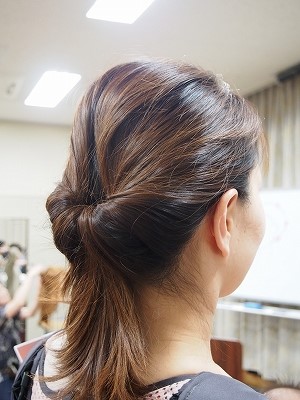 講師のお二人に教わるだけでなく、お互いにやってみたり、感想をもらったりと和気あいあいとヘアアレンジを試されていました。
