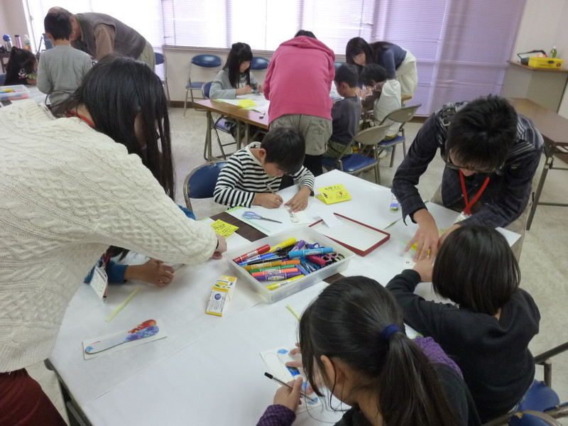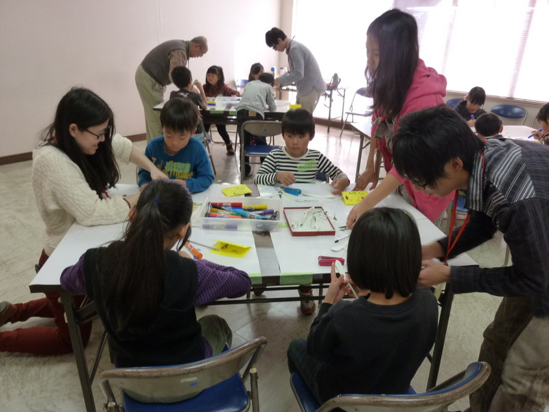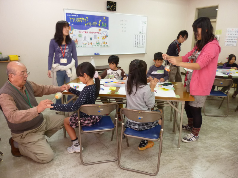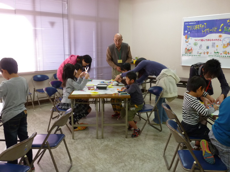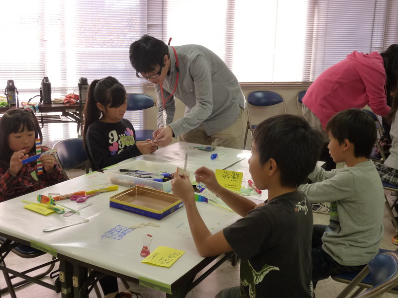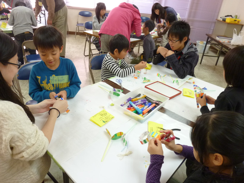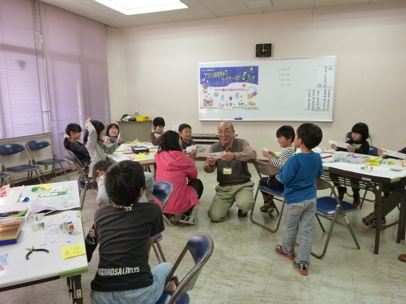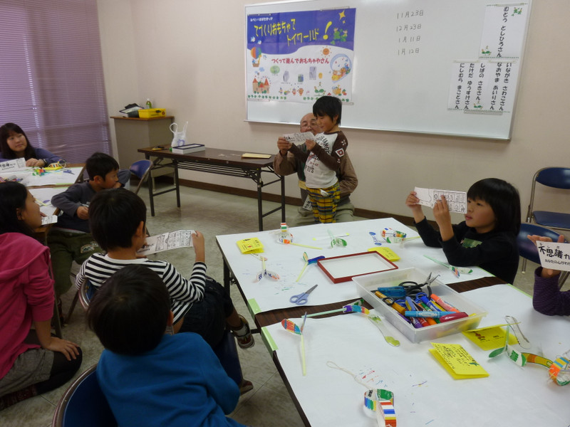 おもちゃをつくって遊んで、新春こどもまつりではおもちゃやさんになろうという小学生対象の講座が始まりました。