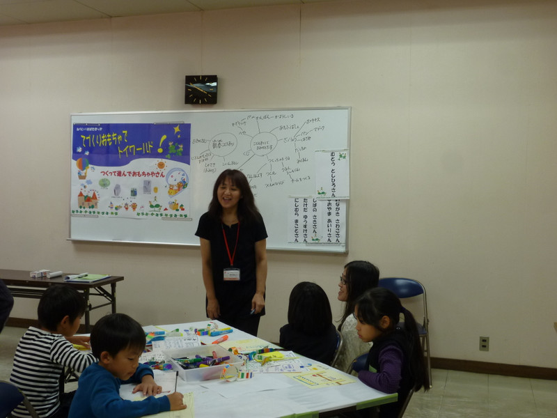 講師に市内幼稚園、保育園、小学校、また公民館のイベントでおもちゃ作りをされている武藤さんに来ていただきました。
