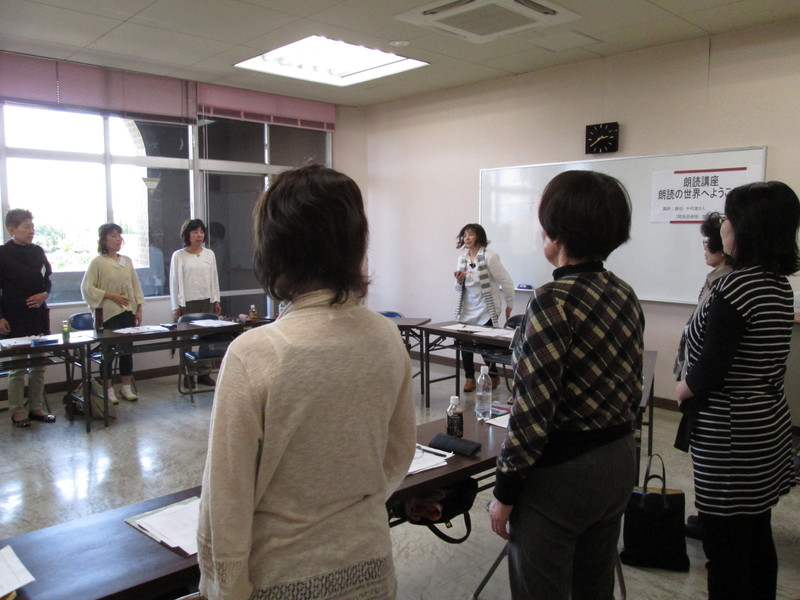 5月16日(金)午後2時~4時30分 3階講習室 にて 第1回目朗読講座 発声・発音のレッスン・作品選び を開催しました。