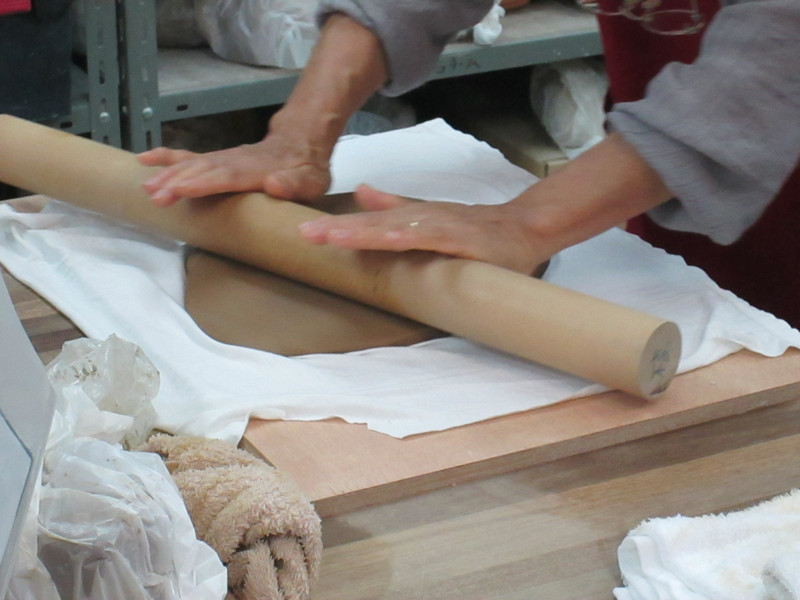 粘土をたたいて、たたいて、伸ばして、伸ばして、ひたすら伸ばして・・・