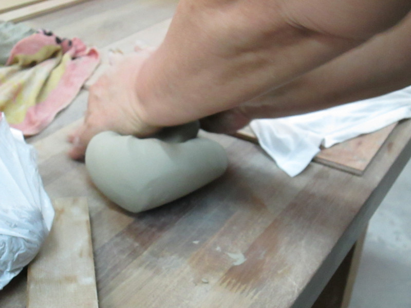 伸ばす前に、粘土の中の空気を抜くためしっかり練ります。