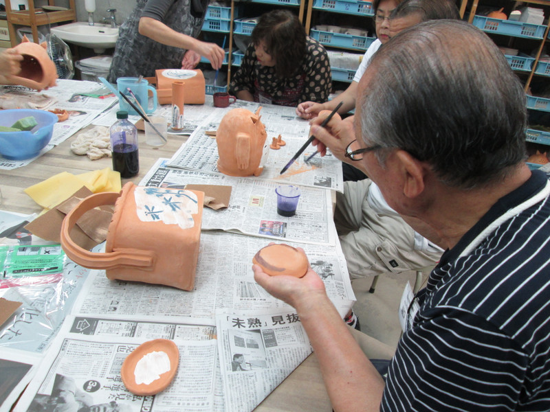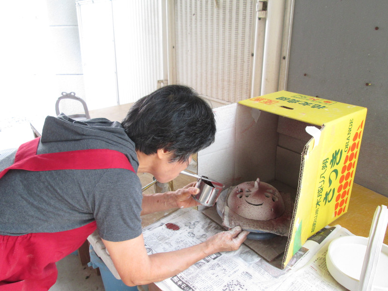 7月20日(日)、素焼き窯だし・釉薬かけ・本焼き窯入れを行いました