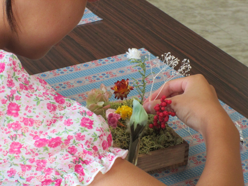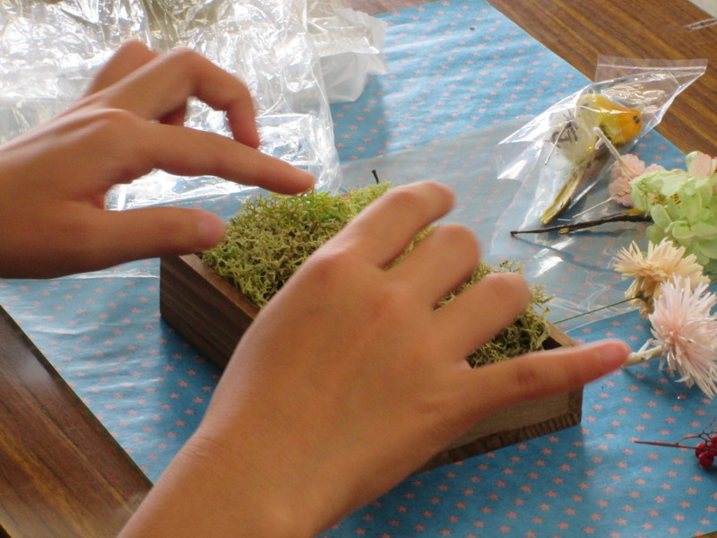 「お庭を作ろう!」 プリザーブドフラワーを使った工作をしました。