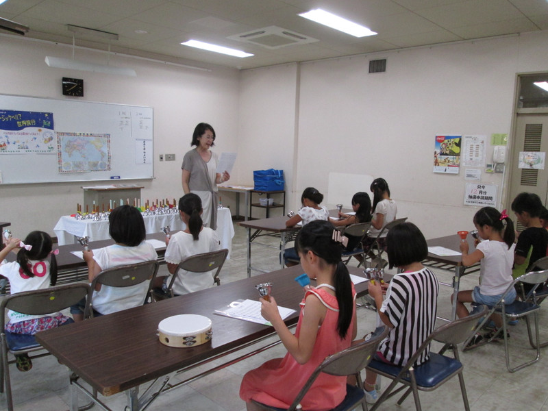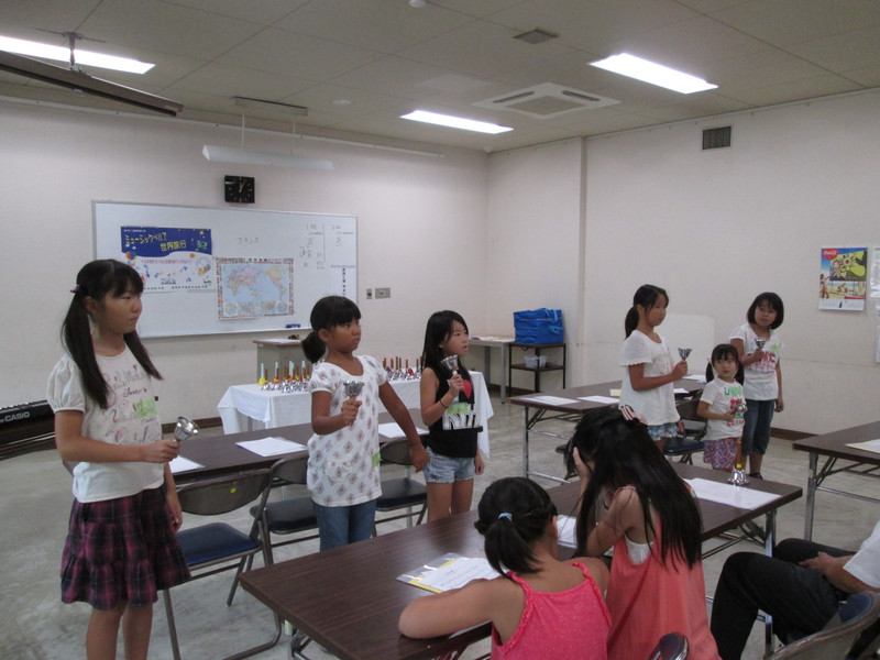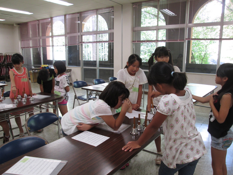 小学生対象のミュージックベルのワークショップを午前10時30分から午後3時30分まで昼食も挟み3日間連続、8月20日、21日、22日で行いました。