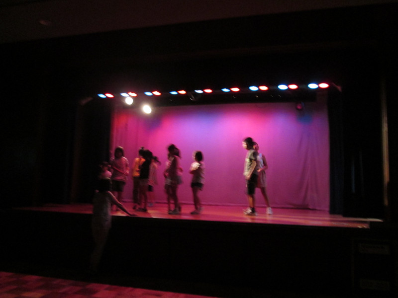 曲は各班ごと、リーダーを中心に多数決で決めていました。そしてどこの部屋で行うか、舞台のある大集会室を見にいきました。皆、ここが気に入り場所は大集会室に決定です。