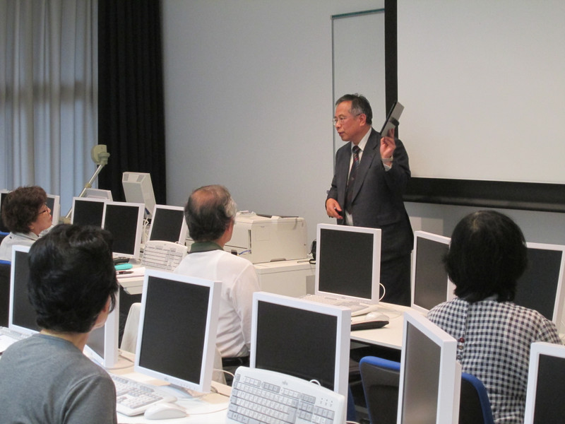 本日の講師は帝塚山学院大学教授 高橋参吉先生です。第1回目のテーマは「子どもや孫と楽しむiPad」。どんなことが知ることができるでしょうか。