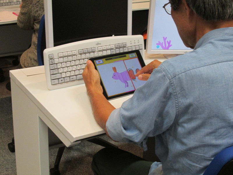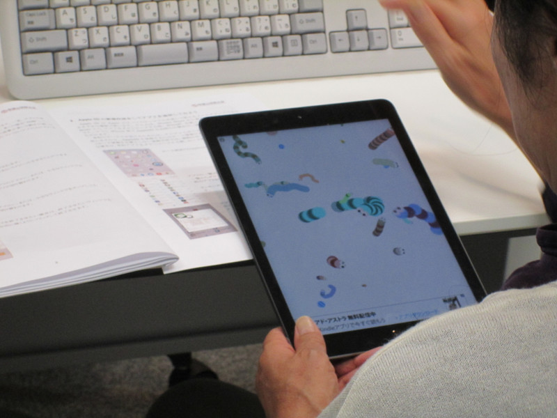 初めてiPadに触れてみてどうでしたか?初めは、慎重にスクリーンに触れていましたが、後半では大胆に触れていましたね。