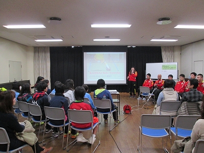 最初に映像を見ながら、アンプティーサッカーってどんな競技か、そして関西SeteEstrelasのことを説明してくれました。