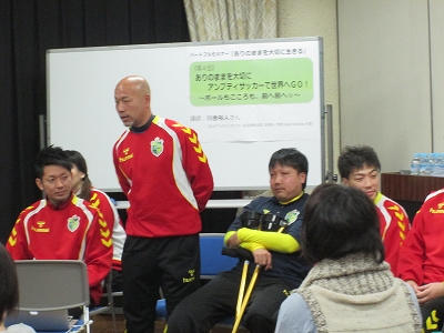その後は、選手の方からは何故足を失ったのか、そしてアンプティサッカーとの出会いや、今思う事などをお聴きし、監督をはじめサポーターのみなさんからは、サポートするようになったきっかけや今関わっていて思う事などのお話を聴かせてもらいました。