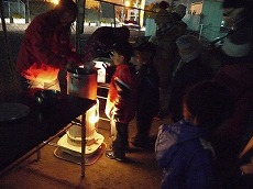 風のきつい日だったので甘いおしるこが冷える体を温めてくれ、おかわりをする人もあり、好評でした。