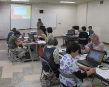 本日で、初めてのパソコン講習も三日目、今日は文章の入力・編集です。前回から一週間経ち、皆さんローマ字をかなり学習された様です。前回は、30文字の入力でも、小一時間かかりましたが、今回は約20分で、皆さんの努力が伺えます。