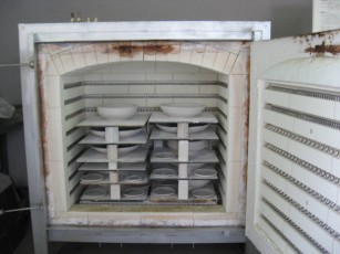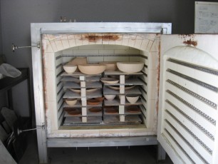 午後3時。窯に入れて本焼きです。1230度まで加熱します。